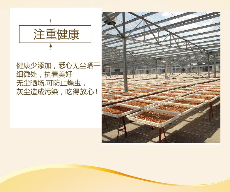 l  采用太陽能密封玻璃曬場(chǎng)自然曬干,保留蜜餞原始的風(fēng)味;